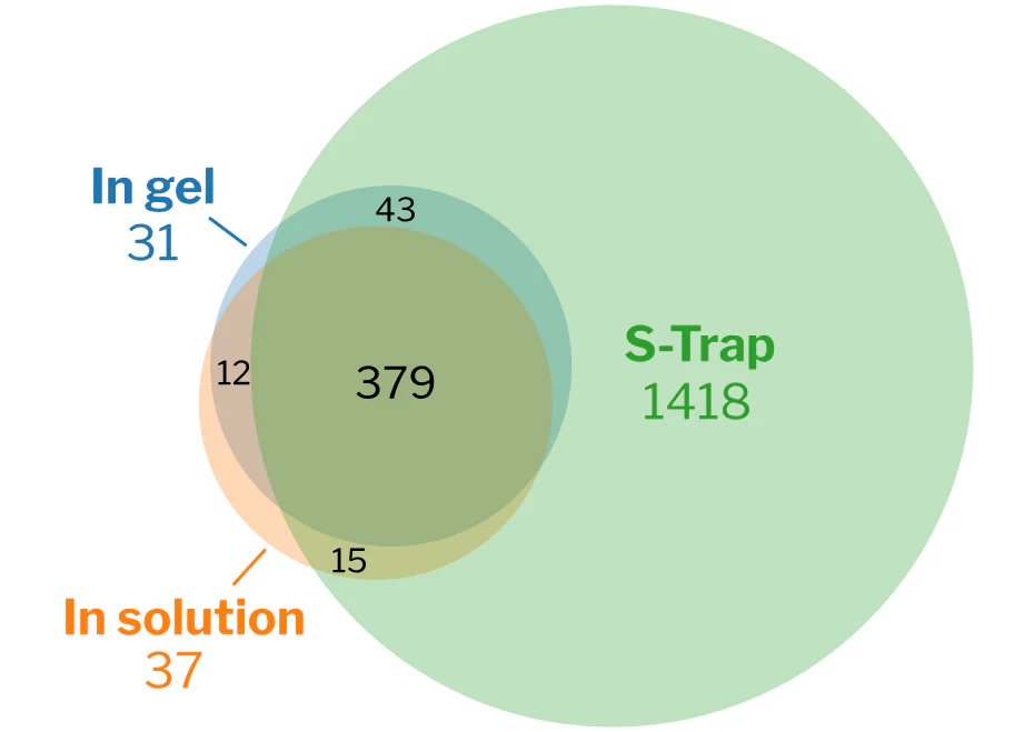 “S-Traps demonstrated the best overall performance, with the largest numbers of protein identifications and quantitative reproducibility. [You can] use SDS in your proteomics sample [and] it outperformed all other methods regardless of lysis conditions. Therefore, S-Traps provide the best balance of time, cost, and performance of the bottom-up workflows examined in this study.”